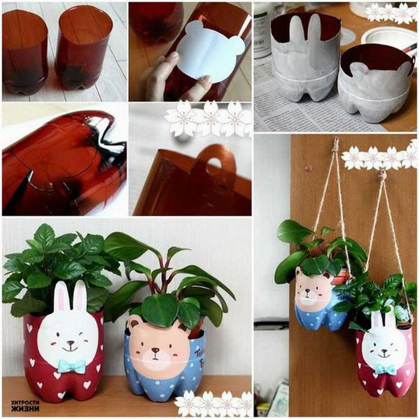 немножечко фантазии и художественных навыков и оригинальный вазон из пластиковых бутылок украсит дачный участок