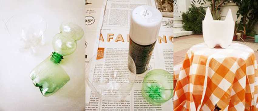 Тут нужно подключить свое воображение. Чтобы сделать вазон в виде котенка, например, берут пластиковую емкость (для туловища) и 6 деревянных опор. Опоры нужно зафиксировать к емкости алюминиевой проволокой: делают 4 лапы, из других двух голову и хвост. Потом пространство внутри туловища отделывают бетоном, аккуратно скульптурируют. Голову можно сделать из любого круглого предмета.