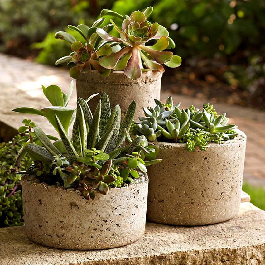 Раствор легко примет те формы для вазонов, которые вы захотите, быстро схватится. Уличные вазоны для цветов предпочитают изготавливать именно из этого материала (большой плюс ─ их вес) и устанавливают их в местах с высокой проходимостью. Служат долго, цена доступная. Многих садоводов устраивают вазоны из бетона, в т. ч. и те, то они сделали своими руками.