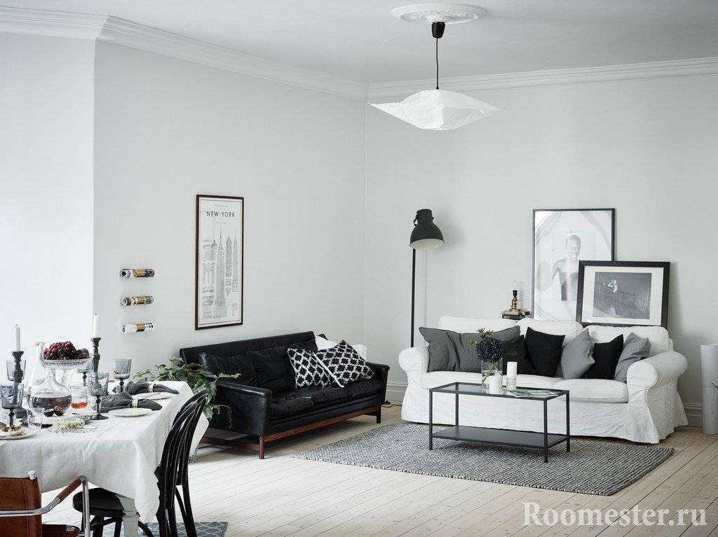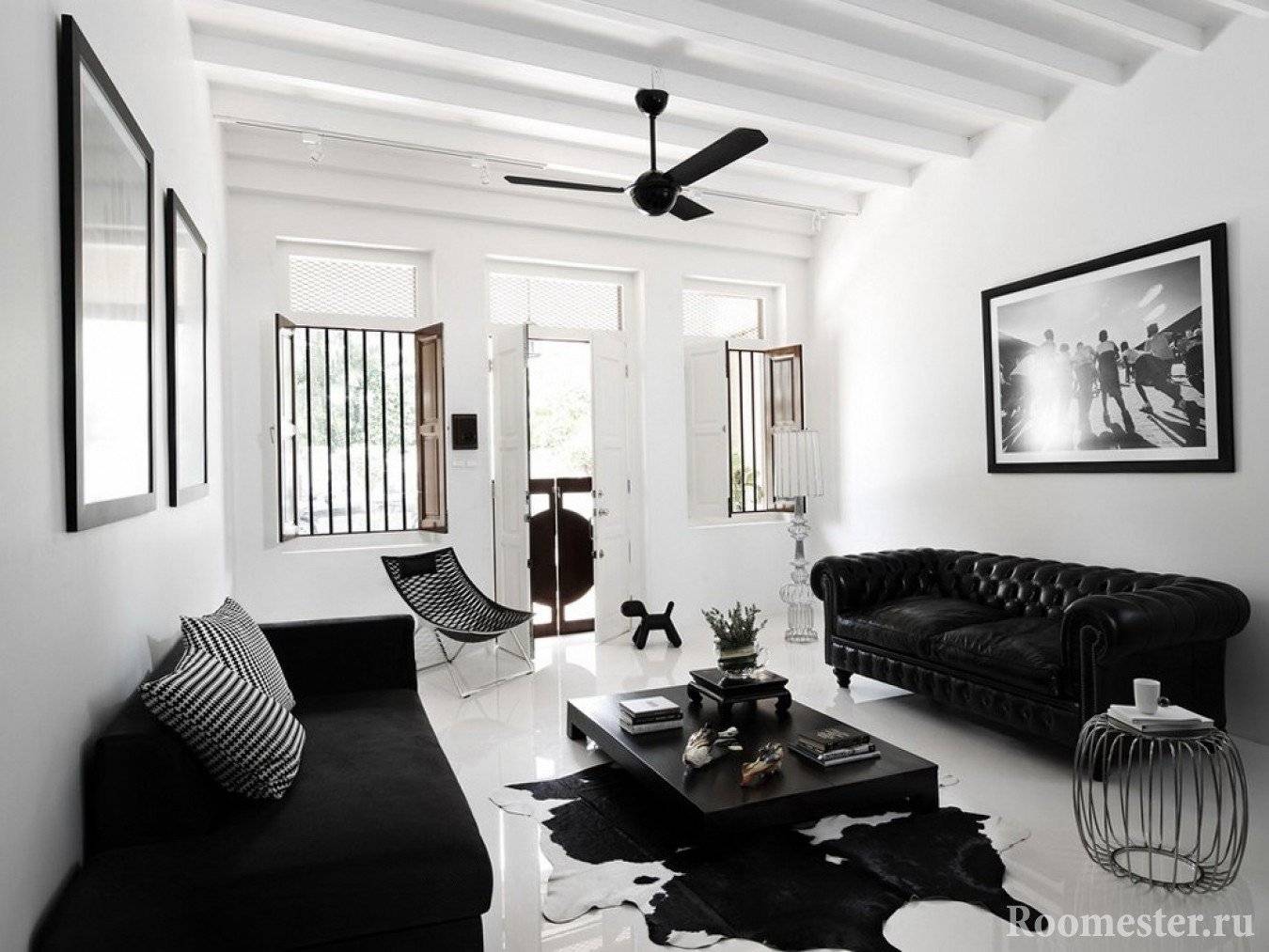 Классическое сочетание цветов в дизайне черно-белой гостиной делает помещение строже, но в то же время элегантнее и аристократичнее; -