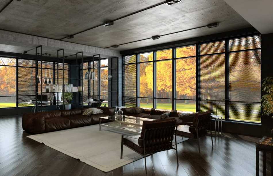При этом в помещение должно попадать как можно больше естественного света, поэтому шторы в лофте ни к чему.