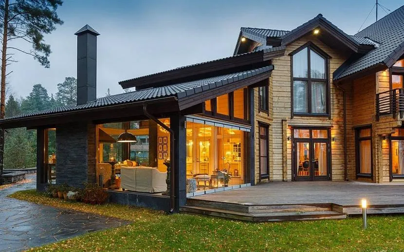 Веранда из сруба будет уместна в случае, если дом выложен из бревен.