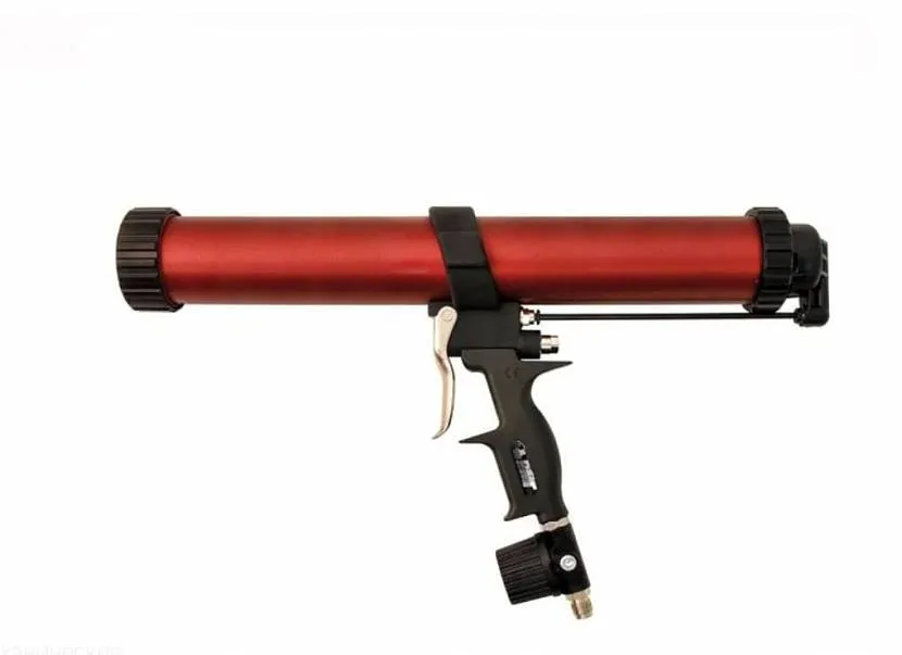 Пневматический. Один из наиболее надёжных инструментов для профессионалов. Может использоваться с тубами разных видов, универсален. Подача вещества осуществляется не движением поршня, как это происходит во всех остальных моделях, а за счёт давления нагнетаемого в тубу сжатого воздуха.