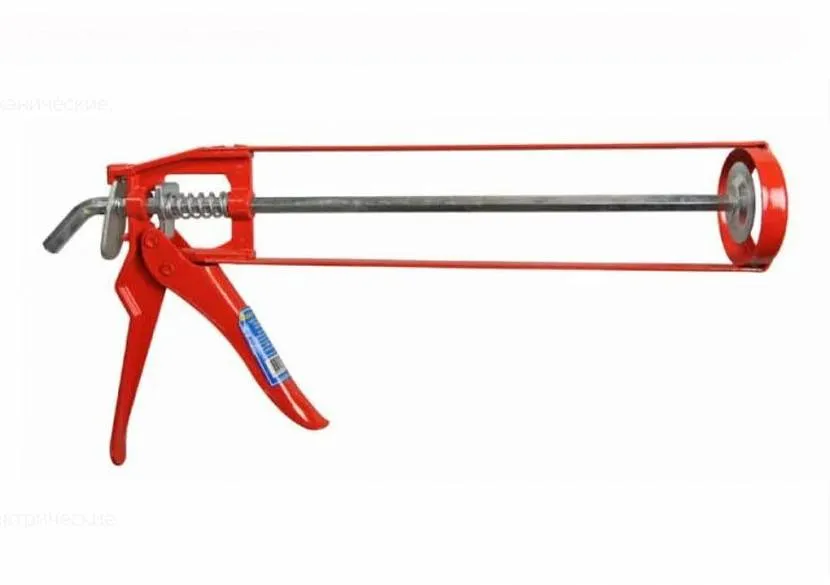 Инструмент наиболее универсальный, так как позволяет наносить герметик не только в тубах, но и в упаковке типа «колбаска» или вообще без тары.