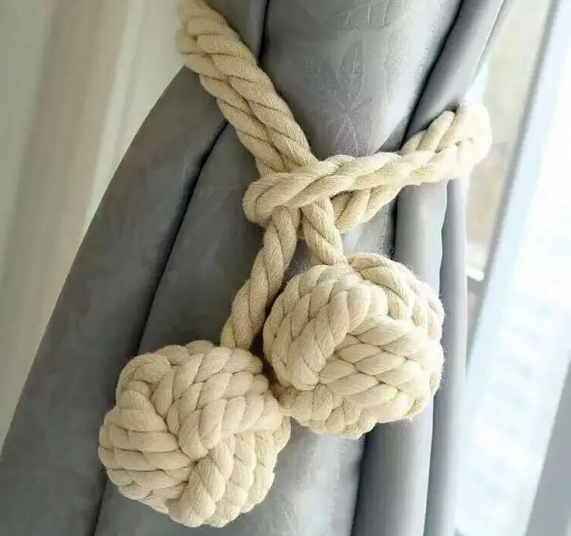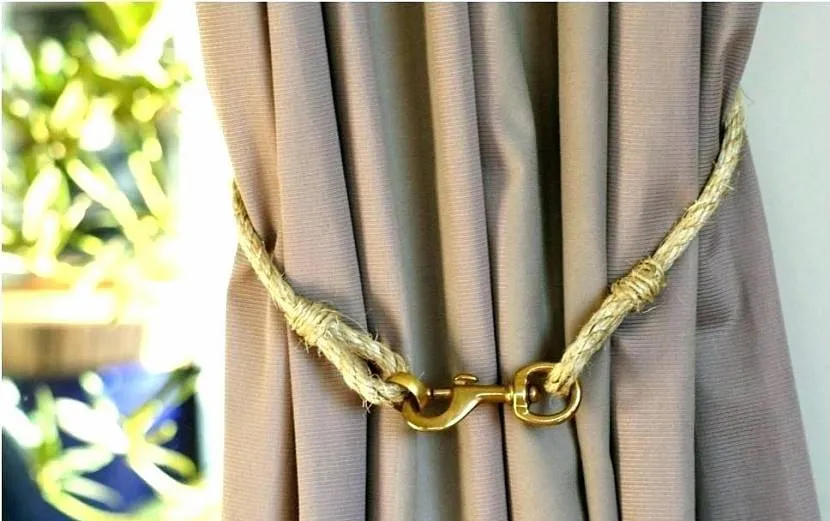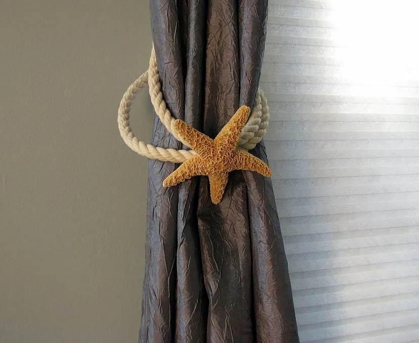 Средиземноморский. В комнате с намеком на морскую тематику уместно смотрятся плетеные фиксаторы, напоминающие канаты. Их можно дополнительно декорировать ракушками, морскими звездами, хрустальными и акриловыми бусинами, или декоративными безделушками в виде якорей.