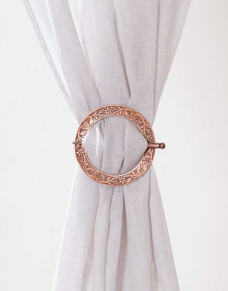 Очень интересный шторный аксессуар. Представляет собой кольцо, сквозь которое продевается ткань занавеси. Оформлен он может быть совершенно невообразимо! И кубиком и бриллиантом и в виде чайной чашки без дна, в общем, все зависит от фантазии дизайнера. Выполняется обычно из пластика, дерева или металла, но весит при этом очень мало.