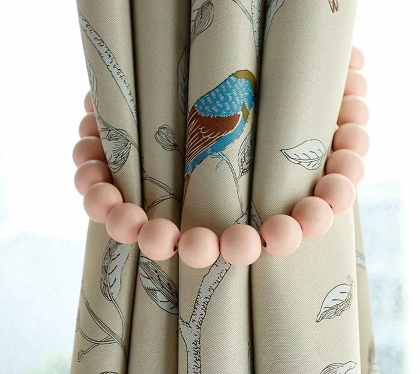 - Легкие портьеры (однотонные или с цветочным узором) требуют подхватов-шнурков, крупных заколок или магнитов с декором из бусин или цветов.