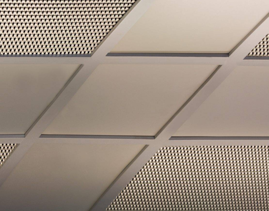 При необходимости его можно полностью разобрать и собрать в новом помещении. Простой и быстрый монтаж позволит провести все работы без помощи профессионалов. Стоимость такого потолка ниже, чем у перфорированных натяжных полотнищ. Покрытие не требует финишной отделки. Потолок можно ремонтировать локально, то есть при необходимости одну или несколько плиток можно снять и заменить новыми. Если в запотолочном пространстве установлены инженерные коммуникации, то покрытие позволяет проводить осмотр, ремонт или замену проложенных сетей