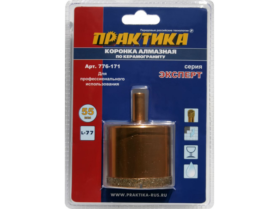 Алмазные коронки предназначаются для точного сверления отверстий в теле твердых материалов, к которым относится керамогранит. Алмаз является высокопрочным и долговечным материалом, не требующим постоянной заточки лезвий. В качестве сверлильного специнструмента алмазные коронки для керамогранита практически не заменимы.