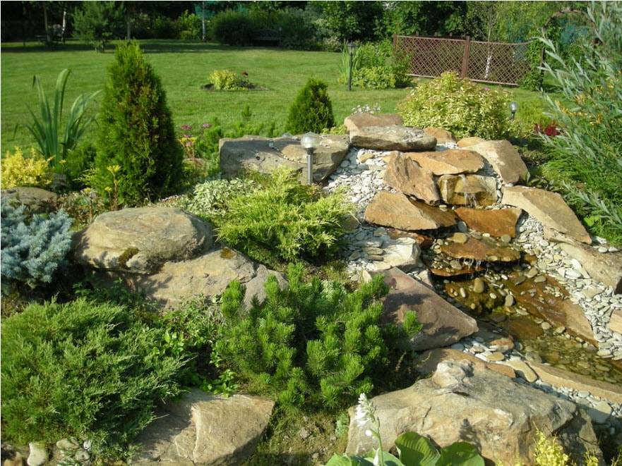 Возле альпинария прекрасно смотрится водоём.