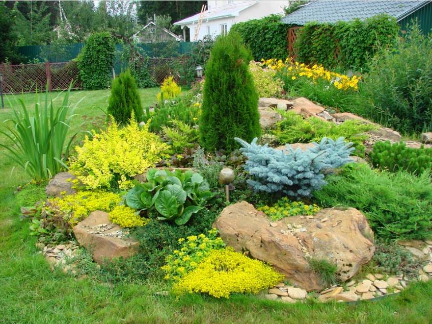 - оригинальный стиль, создающий выраженный эффект альпийских склонов и лугов у себя на участке;