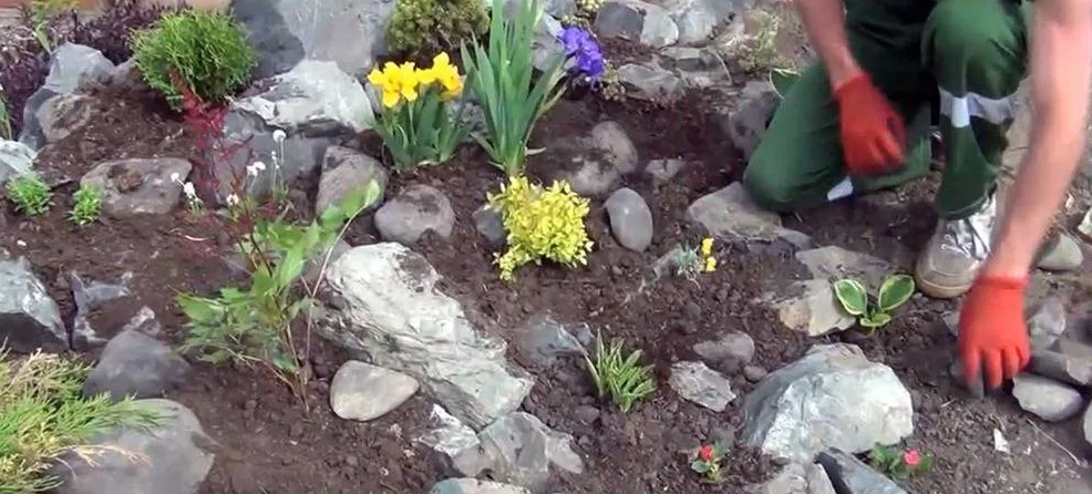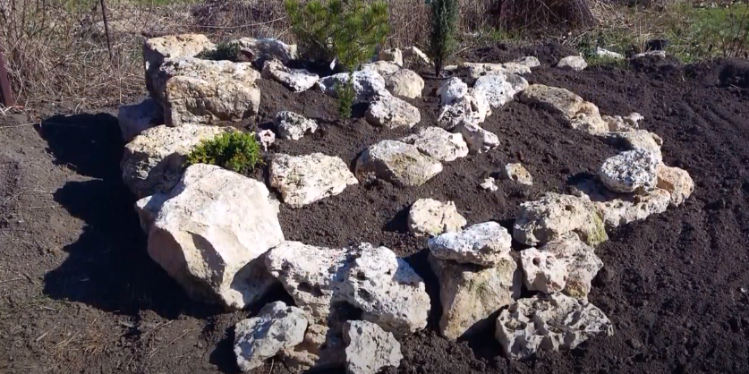 Ими начинают обустройство альпийской горки. Пошагово процесс выглядит так: