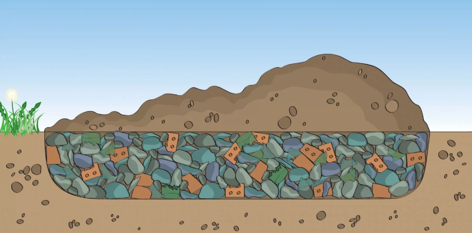 Важно использовать материалы разных фракций и структуры. Подойдет керамзит, битый кирпич, щебень