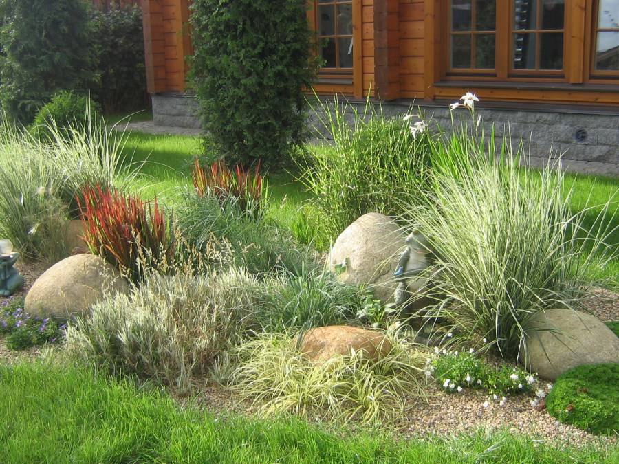 Травы должны быть низкорослыми, они выступают фоном и сочным украшением горки в период, когда цветы уже не цветут, подойдут горец, эрики, алиссум, ковыль, эшольц.