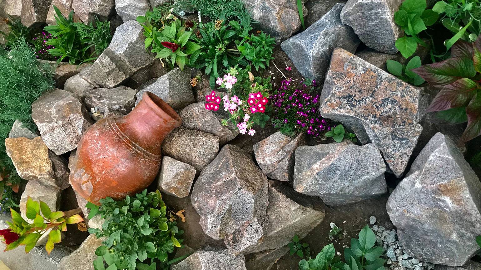 - Камни разного размера (сланец, гранит или песчаник), песок, щебень, гравий, компост.