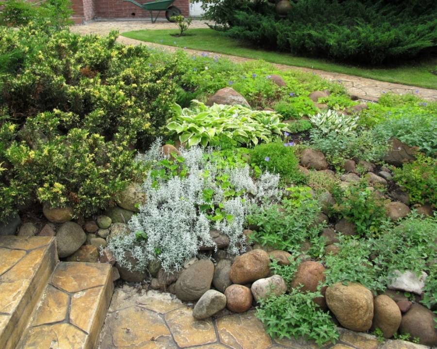 Для придания естественности и долговечности следует сочетать разные виды растений: