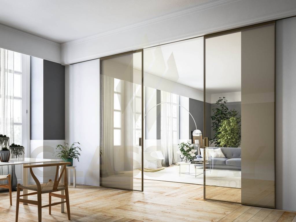 В отличии от предыдущих двух типов, здесь механизм открытия состоит в том, что створку необходимо сдвигать, перемещая ее по направляющим. Раздвижные двери-купе часто оснащают автоматической системой открывания.
