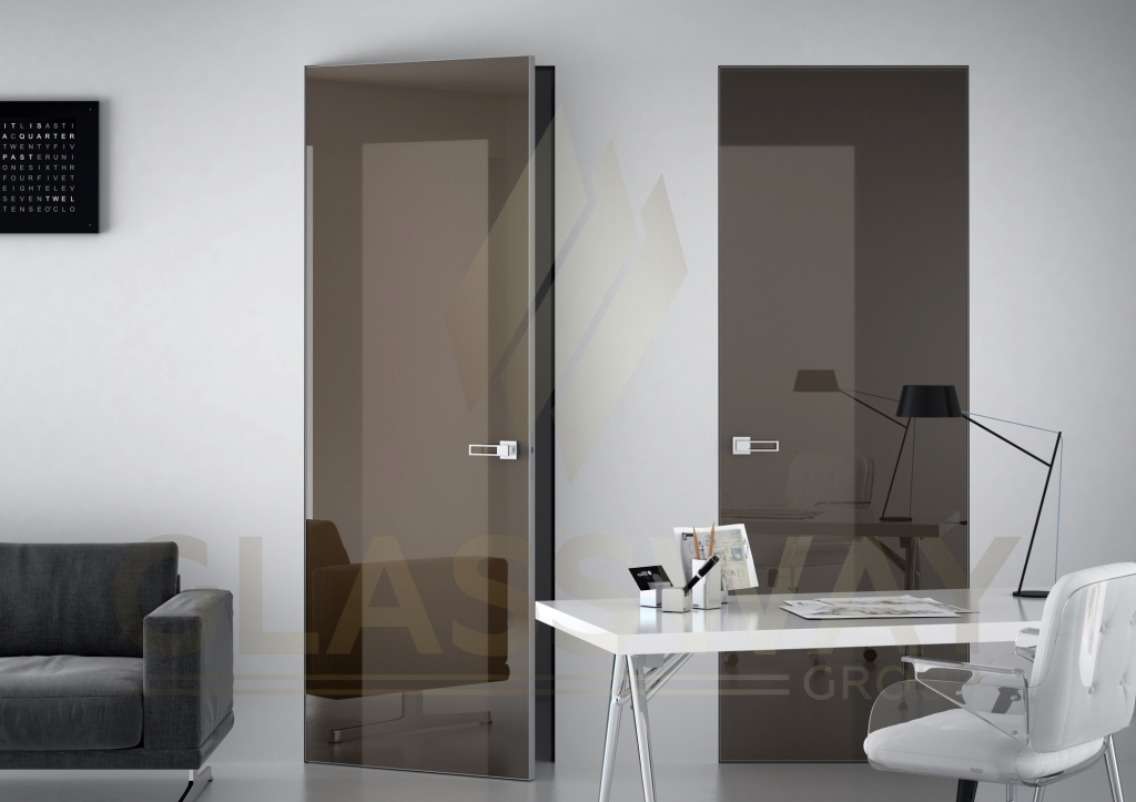 Одинарное заполнение позволяет сделать дверное полотно полностью прозрачным. В помещениях, где мало источников света или отсутствуют окна, такое решение станет особенно актуальным. Кроме того, двери с одинарным заполнение значительно легче, дешевле и могут оснащаться современной технологией смарт-стекла.