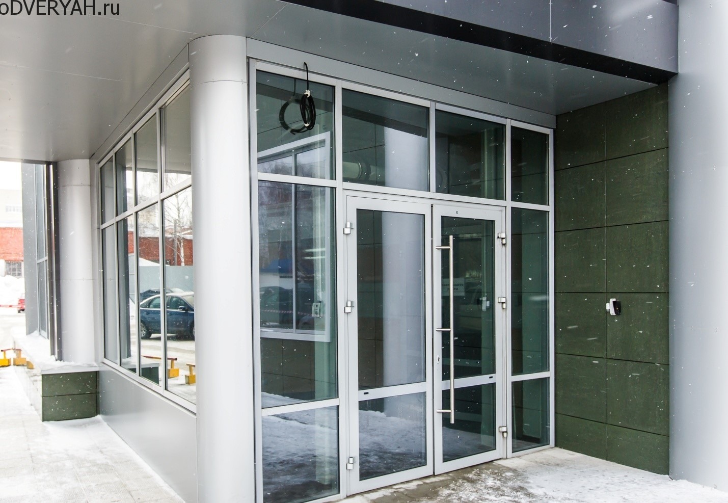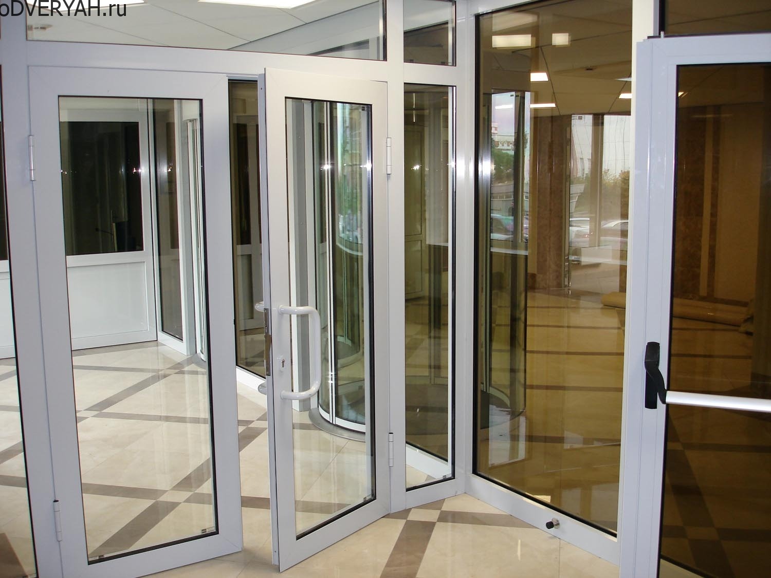 Выбор стеклянных дверей широкий. Раздвижные алюминиевые системы удобны в использовании, их устанавливают на входе в магазины, снабжая датчиками движения. Большую популярность получили двери с карусельным ходом, они защищают холлы зданий от проникновения внутрь холодного ветра и сора с улицы. Их целесообразно устанавливать в оживленных местах.