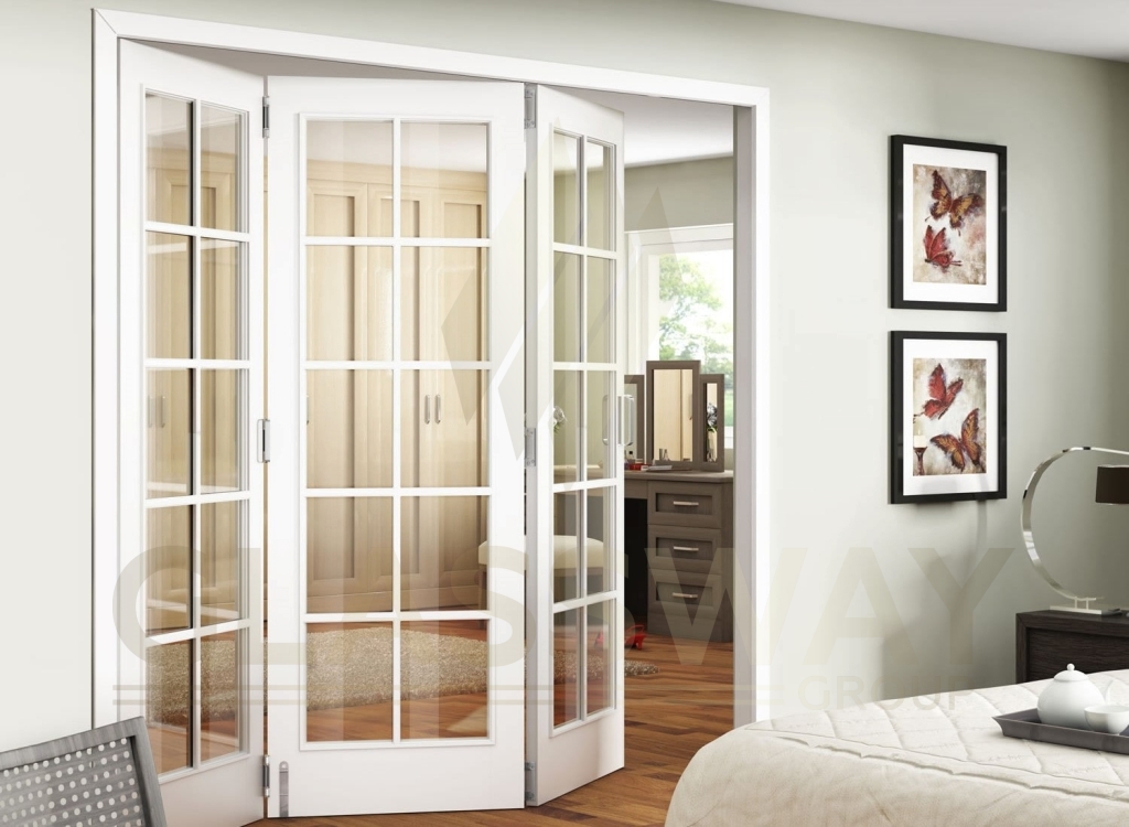 Их можно устанавливать как в больших залах, так и в узких коридорах. В зависимости от ширины дверного проема, складные двери могут меть более пяти секций различной ширины.
