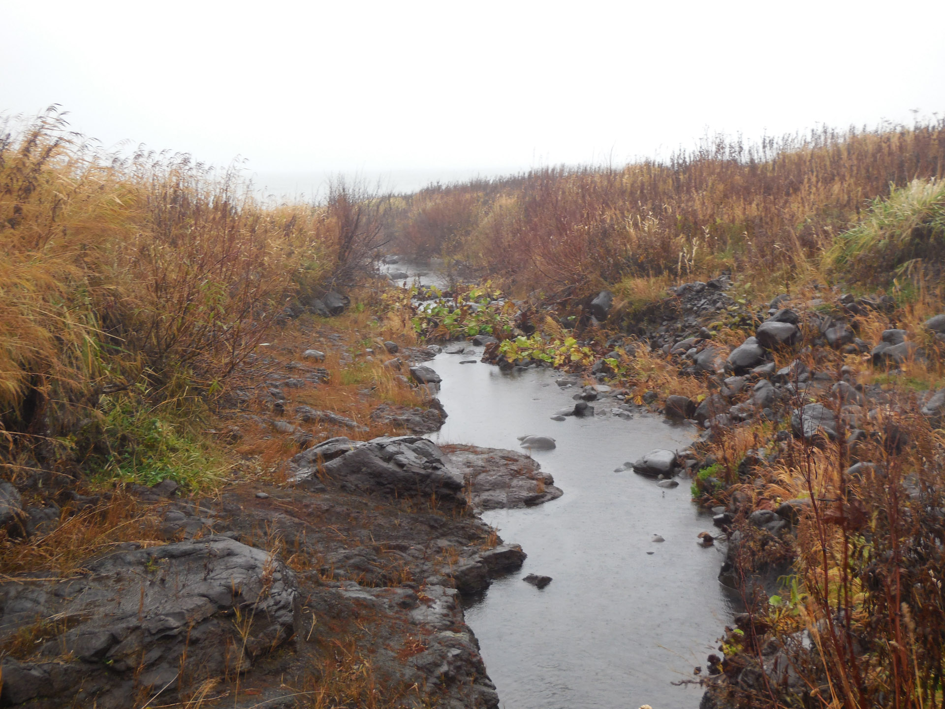 Мы покинули гостеприимный охранный пост и отправились к подножию горы Краснова (гора Уссу – по-айнски). Планировали за световой день взобраться на нее и спуститься.