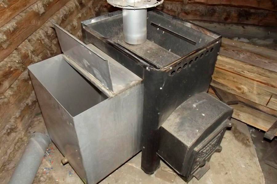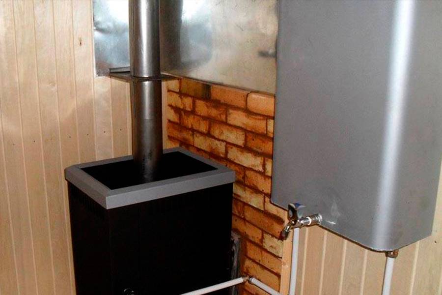 Надо заметить, что если речь идет о самодельных металлических печах (например из трубы), то вода в ёмкости поставленной на печь, запросто может закипеть, даже если печка нагревается газом. Если парилка и мойка представляют из себя одно помещение, то мыться, при кипящей в ёмкости воде, становится испытанием.