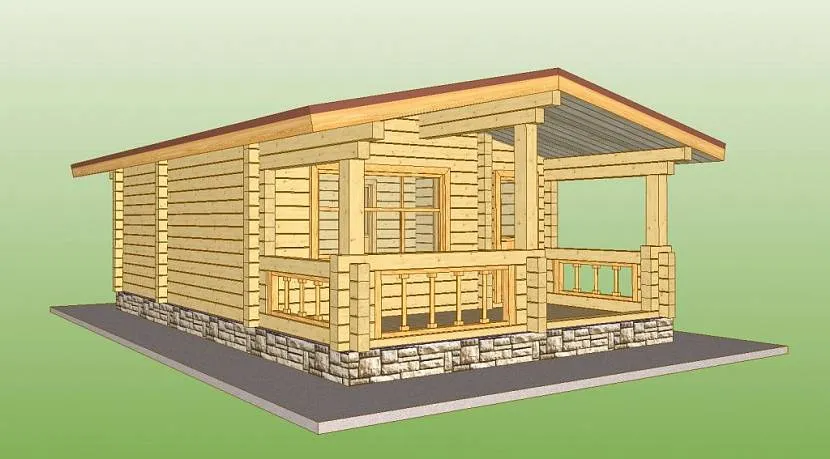 - Открытые. Конструкции с опорными столбами вместо стен и кровельным навесом. Отличный вариант для односкатной бани.