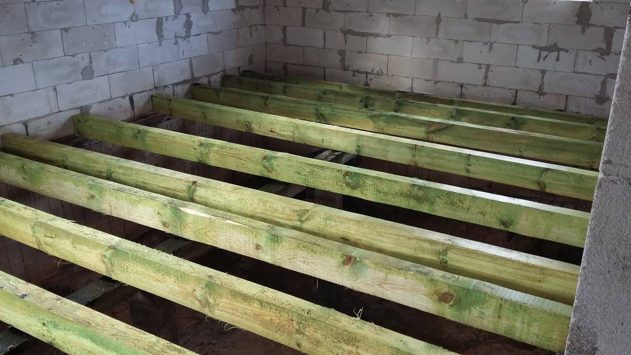 Заключается в обустройстве напольного основания и потолка. Сначала изготавливается несущий каркас из необработанного бруса, на который ложится половая шпунтованная доска толщиной три – четыре сантиметра.