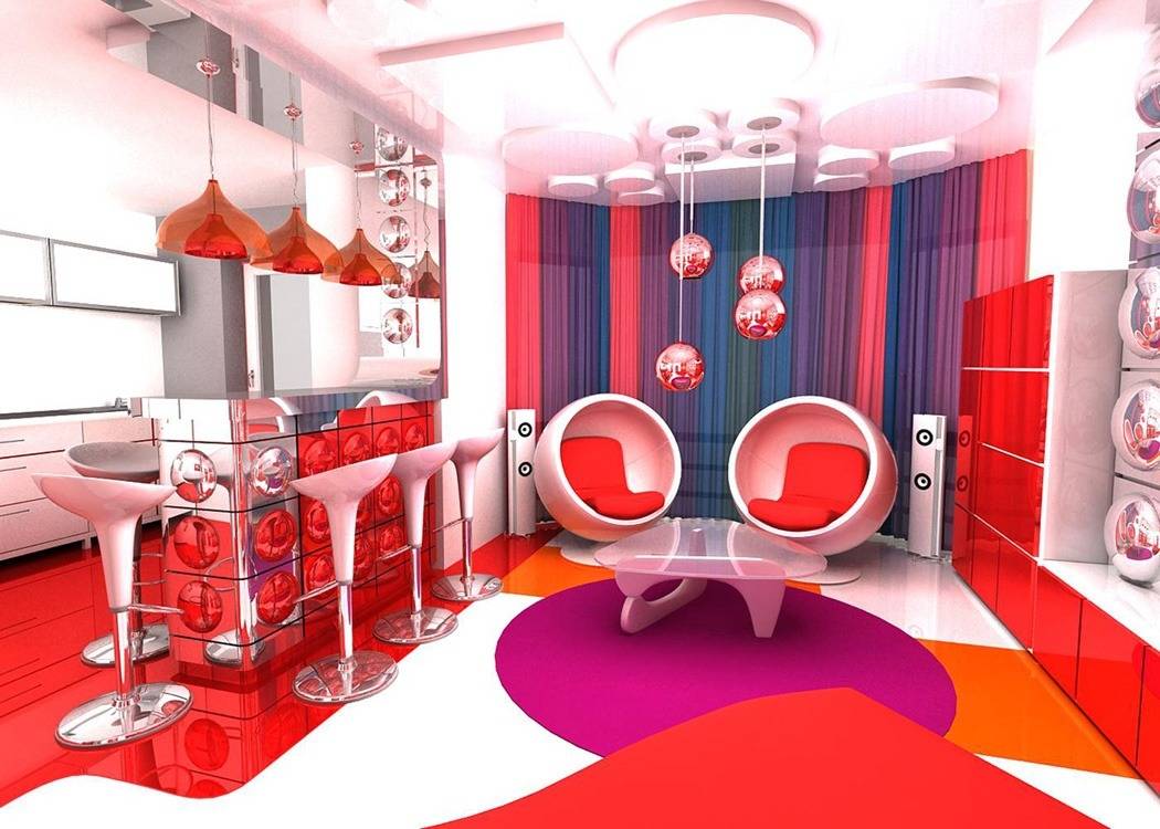 Барную стойку можно вписать в любой стиль и дизайн интерьера. Все зависит от ваших предпочтений и вкуса. Стойка может быть самой необыкновенной формы, став настоящим центром всего дизайна интерьера. Также стоит отметить, что гостиная — это та комната, в которой вы можете реализовать почти все свои задумки, ведь она не является постоянно жилой комнатой, а значит — в ней можно сделать и стойку, и бар, и кинотеатр.