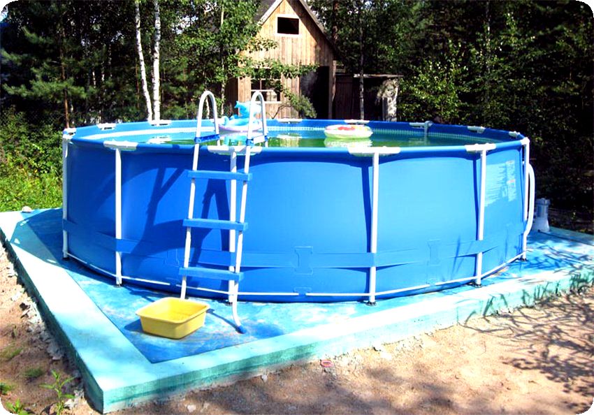 1Каркасные – продаются в готовом к установке виде. Они имеют вид металлического основания, на которое натягивается полотно (обычно пленка ПВХ). Есть базовые и полные комплекты бассейнов – с очистной системой, насосом, лестницей. Установка и использование сезонные. Обязательно предусматривается гидроизоляция
