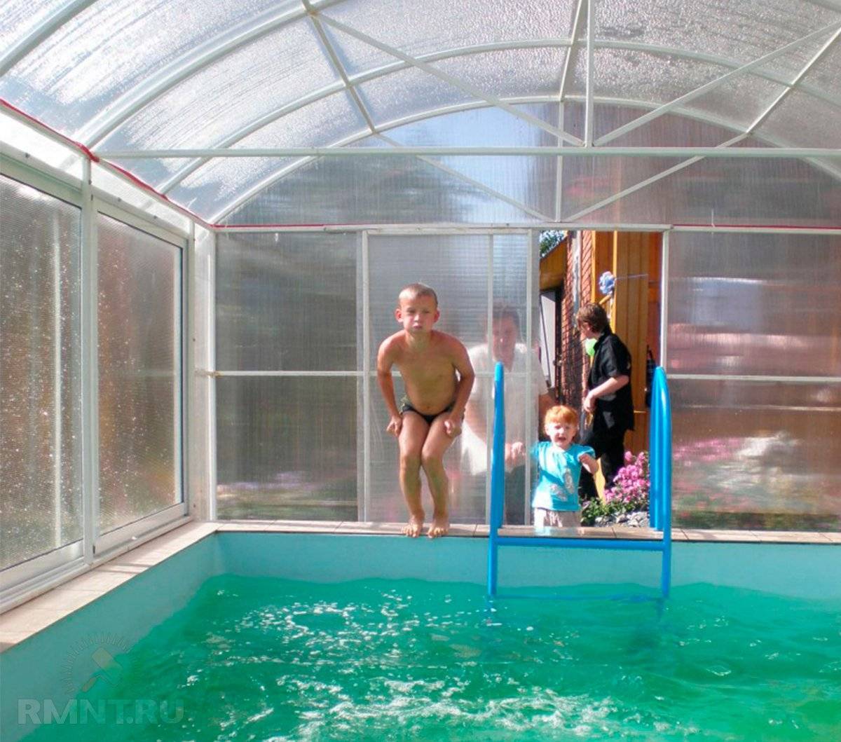 Бассейн с укрытием из поликарбоната имеет много преимуществ: