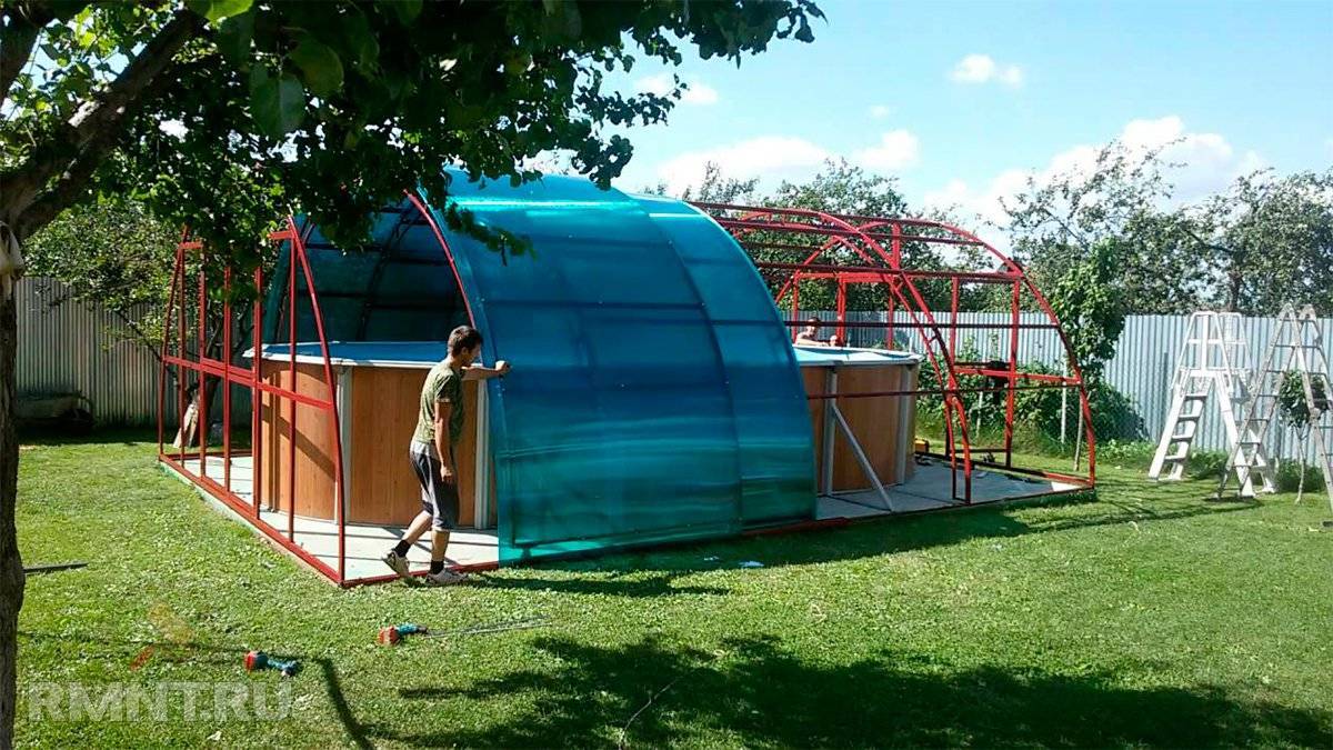Важно! Чтобы павильон для бассейна долго прослужил, для укрытия используют поликарбонатные листы толщиной не менее 8 мм. Метки: бассейн, рука, свой, сделать, теплица