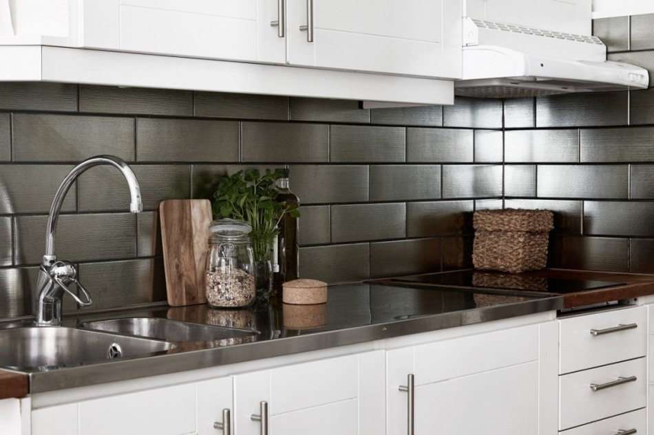 Поэтому, размышляя на тему оформления фартука, обратите внимание на белый кафель. Если хотите сделать оформление оригинальным, рассмотрите чёрную контрастную затирку или какие-то необычные модели плитки.