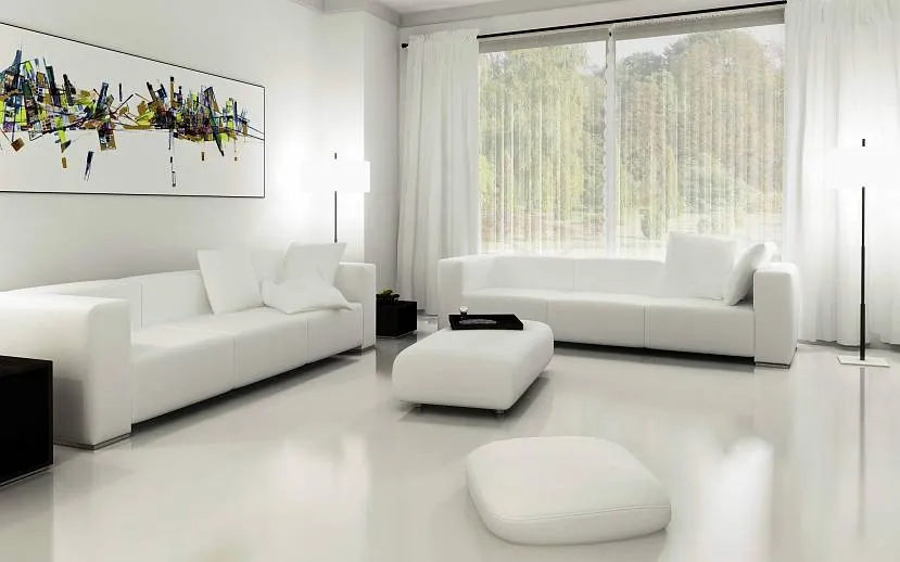 Но все-таки лучше сочетать светлые оттенки с более яркими деталями. Например, интерьер гостиной с белой мебелью хорошо смотрится с контрастным текстилем. Подойдут такие тона: