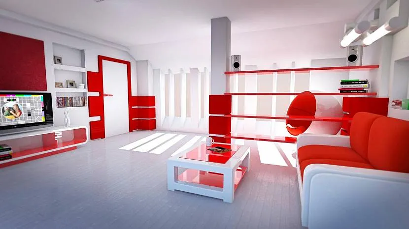 Гостиная в белых и красных оттенкахИсточник ТопДом