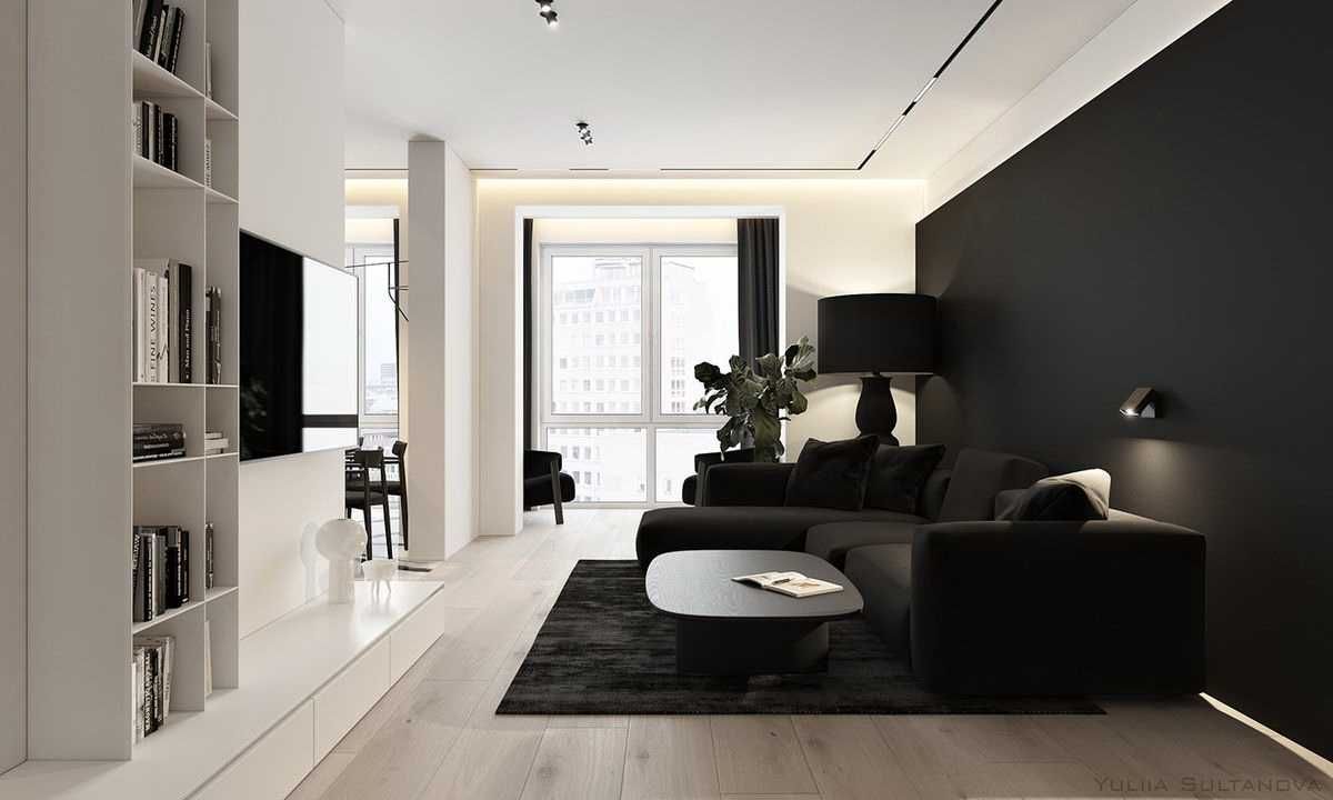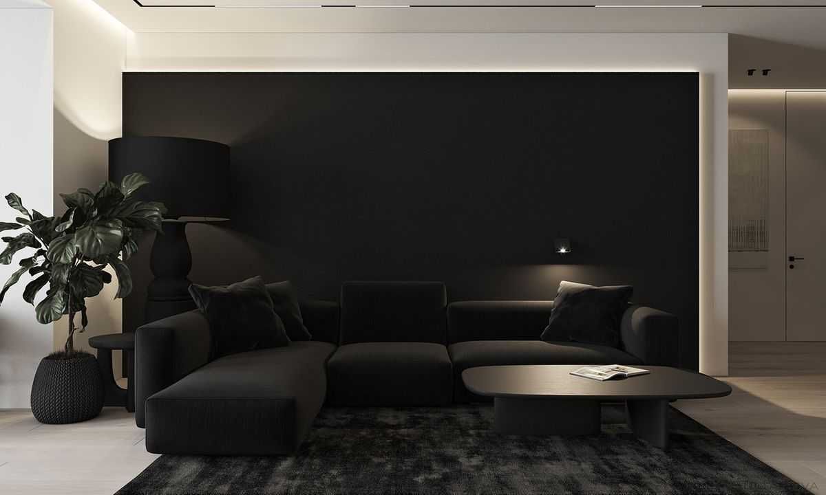 Важно не перегрузить комнату черным, а соблюдать умеренность для строгих и сбалансированных форм