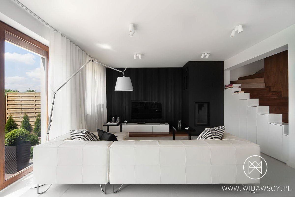 Стена с телевизором в большинстве гостиных – это главная акцентная стена, являющаяся точкой отсчёта для всего интерьера. Если выбирается ахроматическая пара, то выделение стены чёрным цветом – самый очевидный приём.
