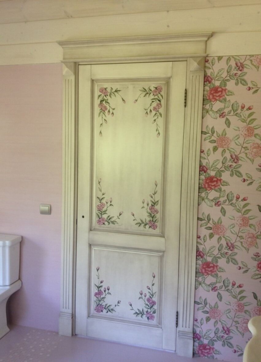 Разнообразить дизайн светлой дверной конструкции помогает фурнитура и другие элементы декора. Например, дверное полотно в классической спальне или гостиной украсят изящные ручки и патина. Такая дверная конструкция станет самостоятельным элементом декора.