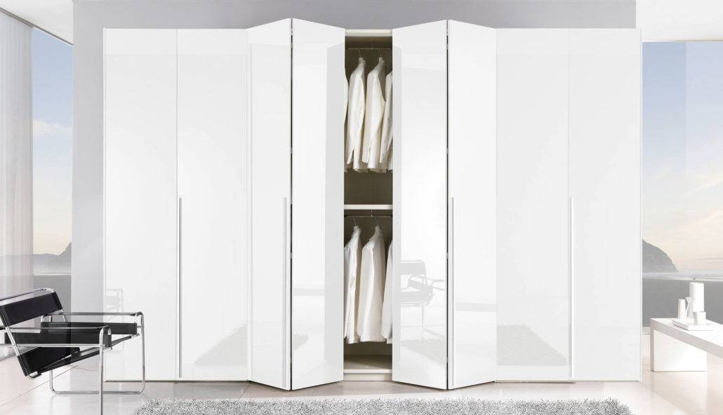 Это классика. Двери на петлях, открываются наружу. Чаще всего шкаф белого цвета с распашной конструкцией выбирают в большую спальню в классическом стиле. Бывают одно-, двух-, трех- и четырехдверными. Занимают дополнительное пространство в комнате.