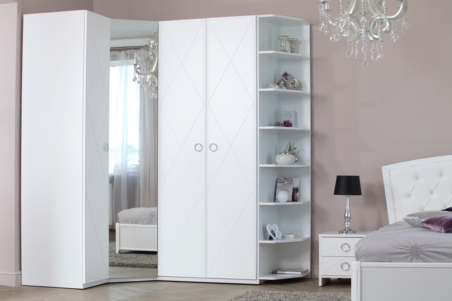 Уделите внимание особенностям установки белого шкафа с зеркалом: в узком проеме такая мебель создаст неприятный эффект, отражая стену, а поставленная противоположно окну в солнечные дни будет ослеплять бликами