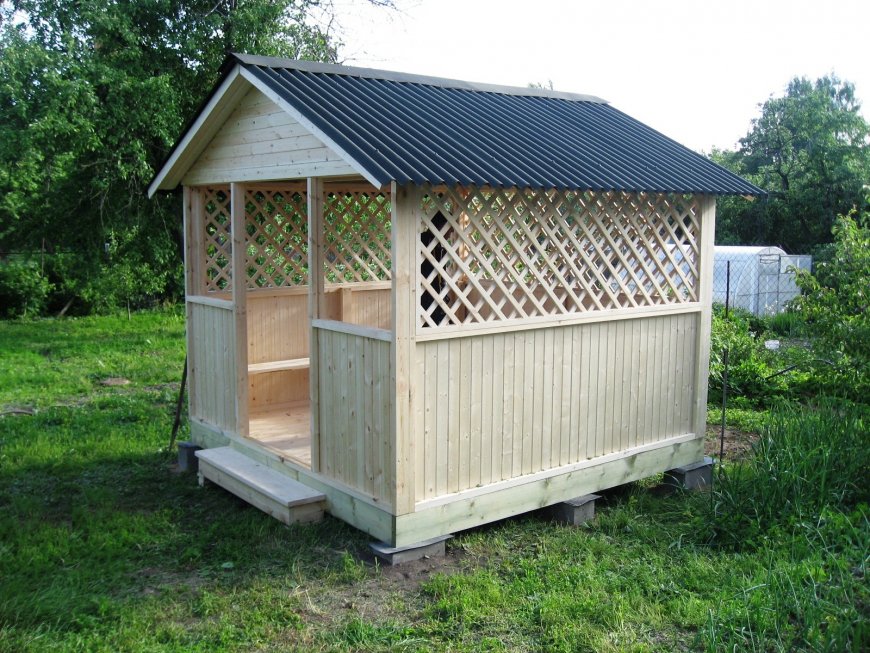 Даже самую обычную беседку можно превратить в уютный красивый домик.