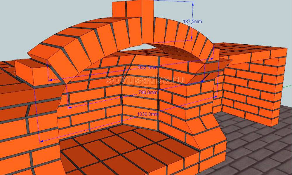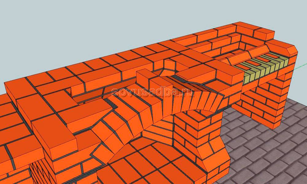 А вот кладку десятого ряда следует начинать с изготовления арки. изготавливается она только по заранее созданному деревянному или металлическому шаблону. Если у вас есть знакомые каминщики, позаимствуйте готовое изделие у них.