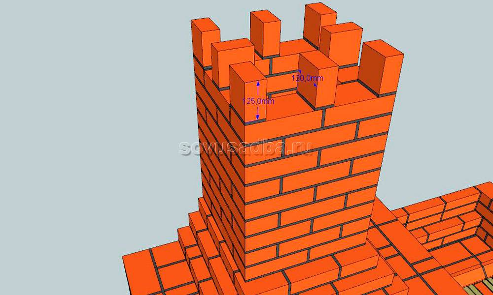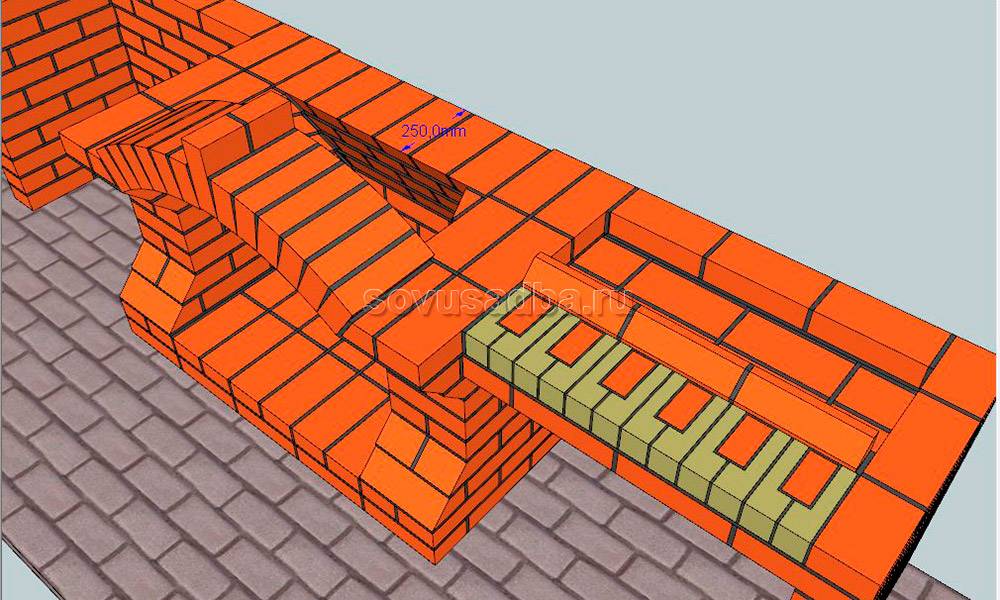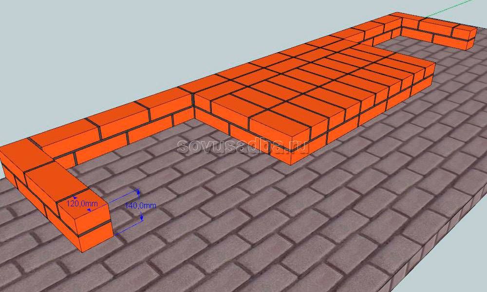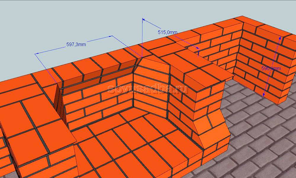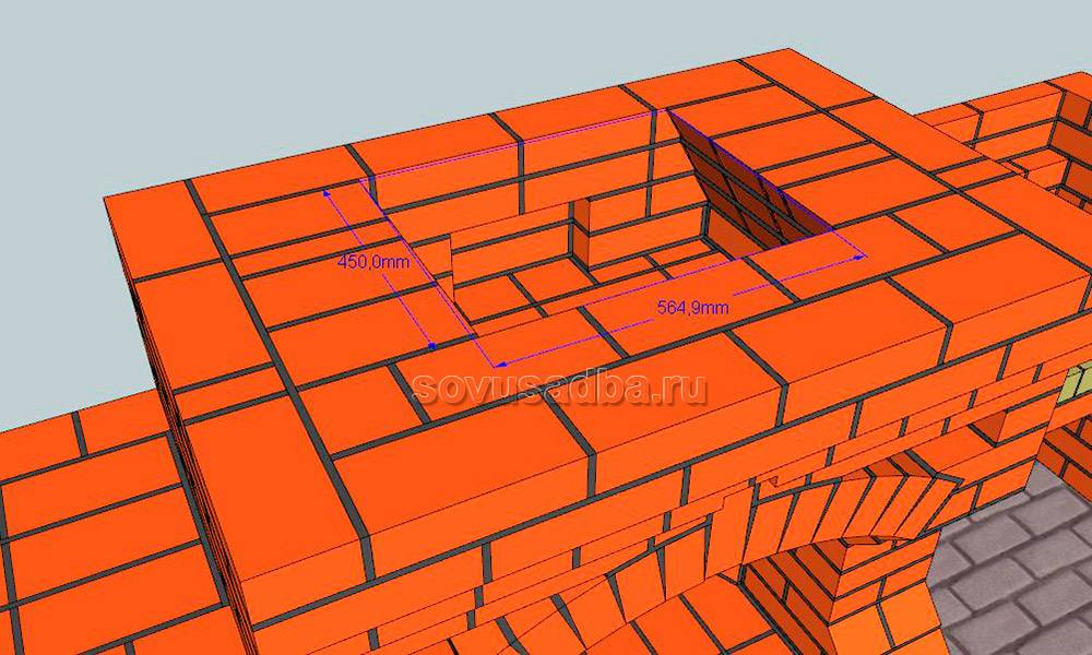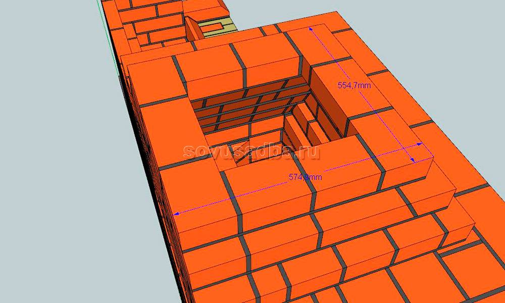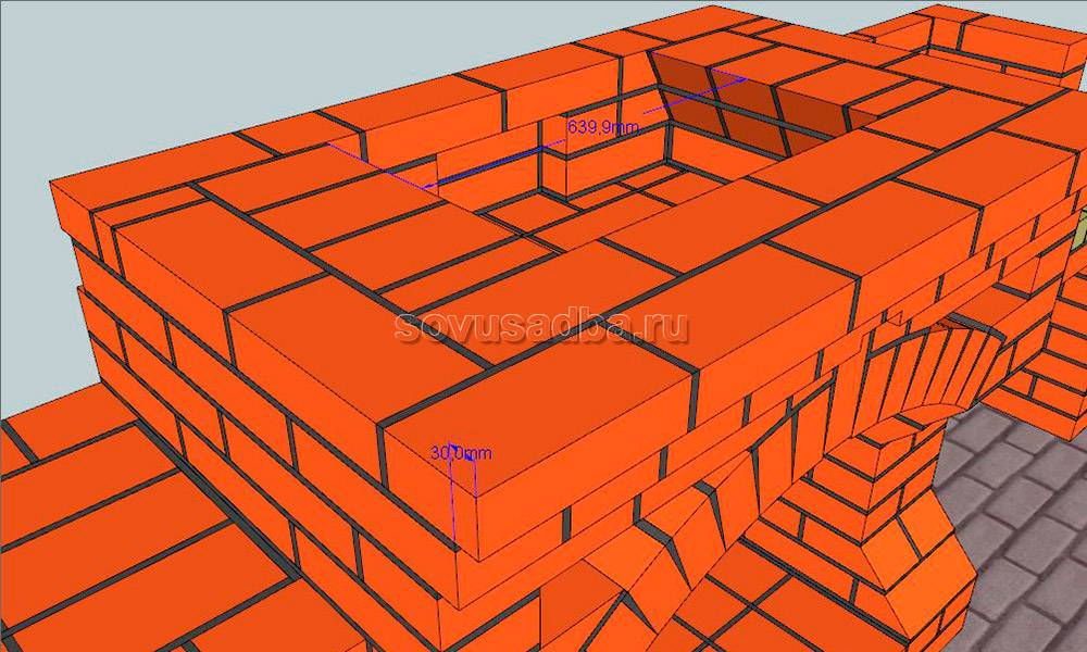 Следующие девять рядов выполните обычной кладкой в полкирпича с самой обычной перевязкой. Единственное требование – хорошо заполняйте кладочные швы, чтобы потом сквозь них не просачивался дым.