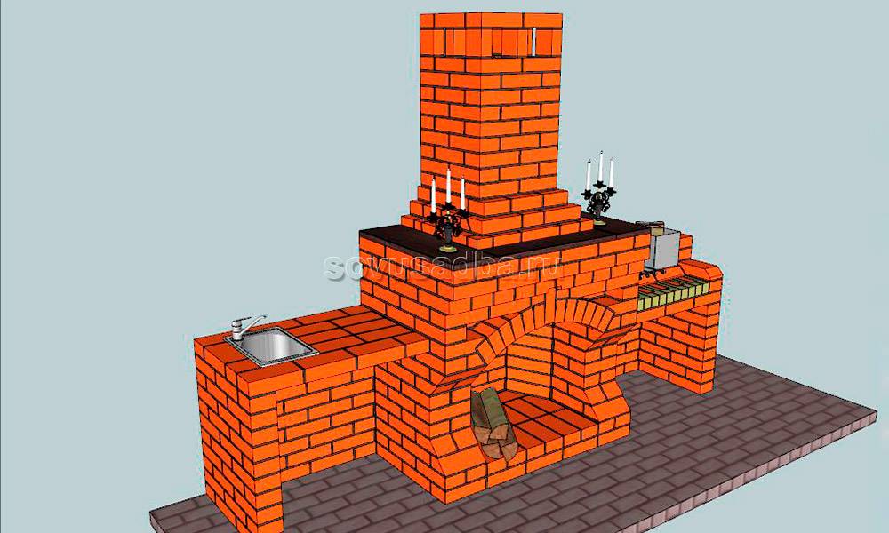 А сейчас мы посмотрим, как построить для беседки саму печь с барбекю, раковиной и красивым камином. Создавать красоту будем из обычного облицовочного кирпича. Если вы не планируете разжигать в очаге антрацит, шамот покупать не обязательно.