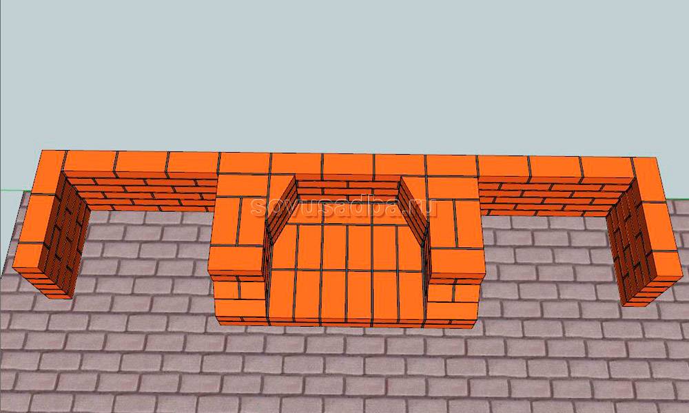 - С 8-го по 11-й – при кладке монтируются скрепы для барбекю, скобы для копчения, место для казана и так далее – в соответствии с проектом.