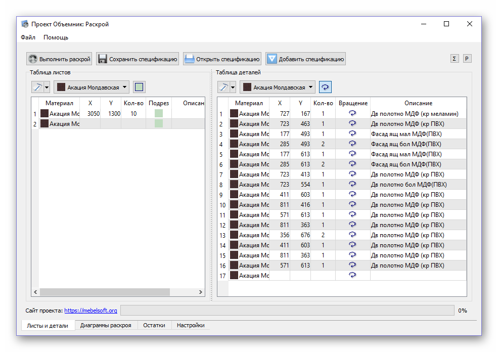 Данный проектировщик в первую очередь ориентирован на компании и предприятия, которые занимаются изготовлением и реализацией мебели. Использовать Объемник могут и менеджеры торгового зала, и дизайнеры, и конструкторы, и руководители – для каждого здесь предусмотрен соответствующий функционал и набор специализированных, необходимых для работы инструментов. В программе можно легко создавать базы данных и хранить в них собственные проекты, рассчитывать стоимость и выполнять раскрой листовых материалов. Просмотр готового проекта возможен не только в схематическом виде, но и в реалистичном 3D. Последний вариант – именно то, что желает видеть каждый клиент.