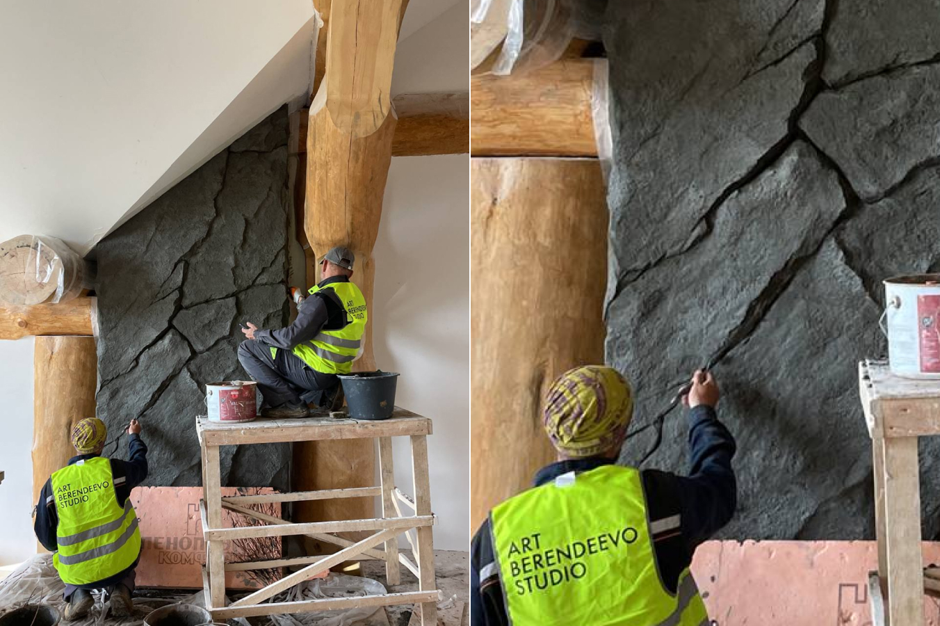 (Процесс работы над отделкой камина в виде искусственных скал | ART BERENDEEVO STUDIO)