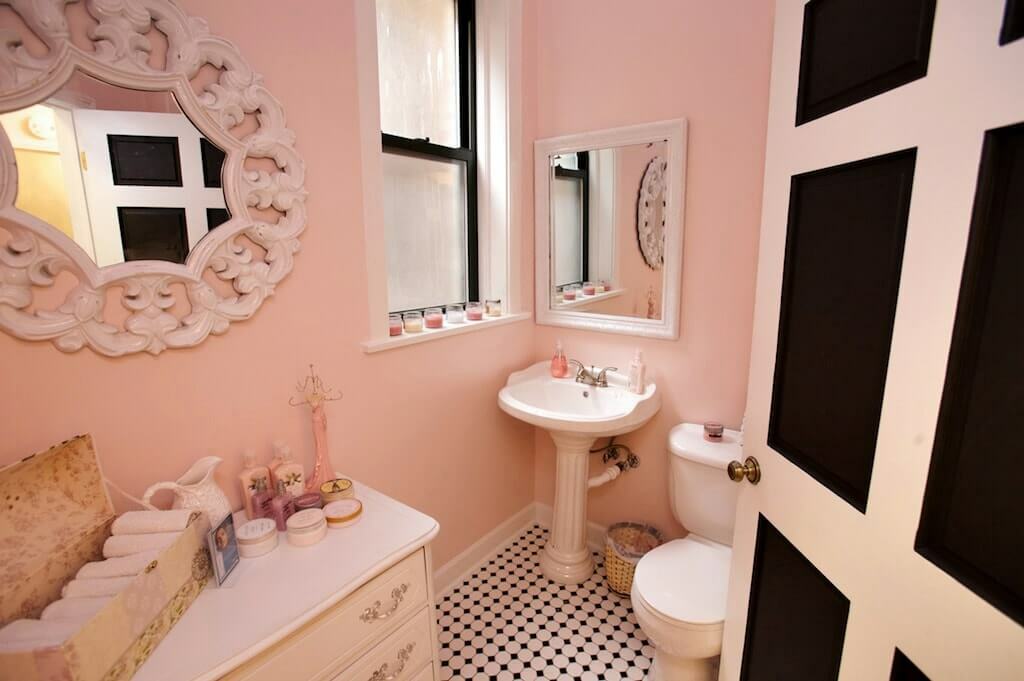 Она не такая маркая и хорошо подчеркнет такие теплые и нежные оттенки, как персиковый, лимонный, апельсиновый или цвет чайной розы, которые часто используются в дизайне ванных комнат.