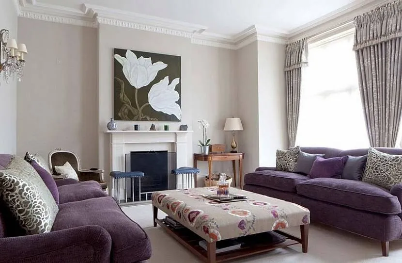 Фиолетовый в дизайне бежевой комнатыИсточник houzz.com