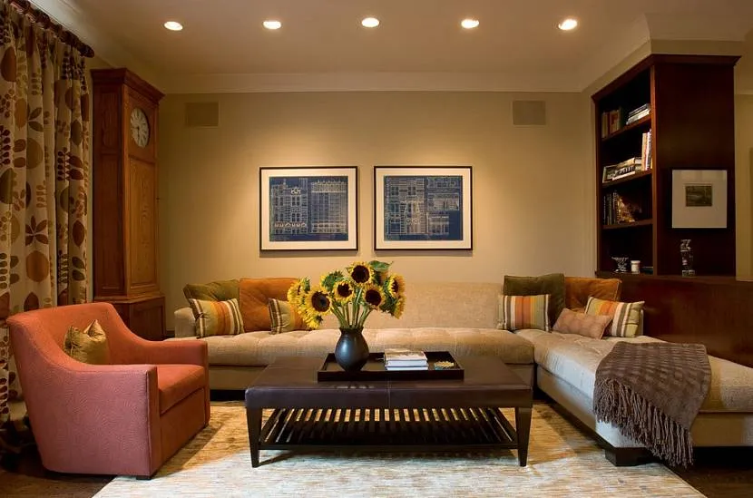Оперируя оттенками цвета, можно зрительно расширить маленькую комнату или сделать более уютным слишком просторное помещение. Бежевый интерьер в пастельных тонах выглядит нежно и естественно. А если правильно внести яркие акценты, то гостиная приобретет индивидуальный шарм. На восприятие комнаты в светлых тонах сильно влияет освещенность: то, что в полумраке кажется мягким и нежным, на свету может приобрести элегантный и торжественный вид.